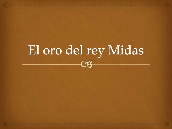 Camin a travs de sus jardines tocando las hermosas rosas inmediatamente estas se convirtieron en oro. El mito del Rey Midas nos ensea como las mayores riquezas no son las materiales y como ser codicioso traer consecuencias negativas. Mito del Rey Midas y Dionisio Midas era un rey muy rico y poderoso que gobernaba Macedonia.